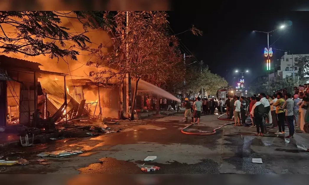 ಸಿಂಧನೂರು | ಬೆಂಕಿ ಅವಘಡ : ನಾಲ್ಕು ಅಂಗಡಿಗಳು ಸಂಪೂರ್ಣ ಭಸ್ಮ