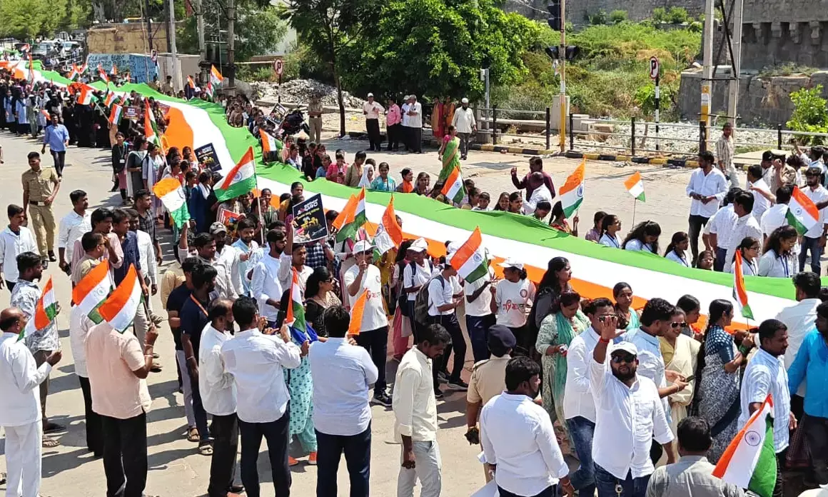 ನಗರದ ಮಹಾತ್ಮ ಗಾಂಧಿ ಕ್ರೀಡಾಂಗಣದಿಂದ ಪ್ರಾರಂಭವಾಗಿ ಡಾ.ಬಿ.ಆರ್.ಅಂಬೇಡ್ಕರ್ ವೃತ್ತ, ಮಹಾನಗರ ಪಾಲಿಕೆ, ತೀನ್ಕಂದಿಲ್ ವೃತ್ತ, ನೇತಾಜಿ ವೃತ್ತ, ಸರ್ದಾರ್ ವಲ್ಲಭಾಯಿ ಪಟೇಲ್ ವೃತ್ತದ ವರೆಗೆ ನಡೆದ ತಿರಂಗಾ ಯಾತ್ರೆಯಲ್ಲಿ ನಿವೃತ್ತ ಯೋಧರು, ಶಾಲಾ-ಕಾಲೇಜು ವಿದ್ಯಾರ್ಥಿಗಳು, ನಾಗರಿಕರು, ಬಿಜೆಪಿ ಕಾರ್ಯಕರ್ತರು ಹಾಗೂ ಸಂಘ ಸಂಸ್ಥೆಗಳ ಪದಾಧಿಕಾರಿಗಳು ಭಾಗವಹಿಸಿದ್ದರು.