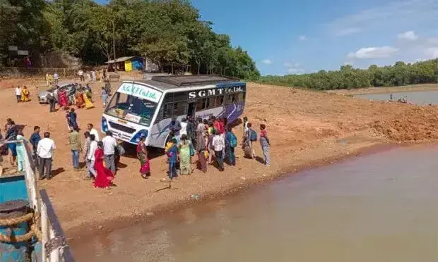 ಸಾಗರ | ನಿಯಂತ್ರಣ ತಪ್ಪಿ ನದಿಯತ್ತ ಚಲಿಸಿದ ಬಸ್: ಚಾಲಕನ ಸಮಯಪ್ರಜ್ಞೆಯಿಂದ ತಪ್ಪಿದ ಅನಾಹುತ