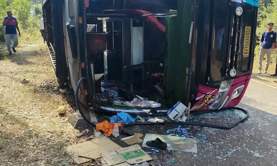 ಸಾಗರ | ಬಿ.ಸಿ.ರೋಡ್ ನಿಂದ ಜೋಗಕ್ಕೆ ಪ್ರವಾಸ ಬಂದಿದ್ದ ಬಸ್ ಪಲ್ಟಿ: 20ಕ್ಕೂ ಅಧಿಕ ಮಂದಿಗೆ ಗಾಯ