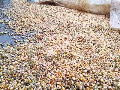 ಮಳೆ ನಿಂತಾಗ ಟಾರ್ಪಲ್ ತೆಗೆಯುವುದು, ಸುರಿಯುವಾಗ ಟಾರ್ಪಲ್ ಮುಚ್ಚುವ ಕೆಲಸ ಮಾಡಿದರೂ ರಸ್ತೆಯಲ್ಲಿ ಹರಿಯುತ್ತಿದ್ದ ನೀರು ಜೋಳದ ರಾಶಿಯ ಒಳಗೆ ಹೋಗಿ ಮೊಳಕೆ ಬಂದಿದೆ. ಈ ಜೋಳ ಮಾರಾಟಕ್ಕೆ ಯೋಗ್ಯವಾಗಿರದ ಕಾರಣಕ್ಕೆ ಅದನ್ನು ಅಲ್ಲಿಯೇ ಬಿಟ್ಟು ತೆರಳಿದ್ದಾರೆ.