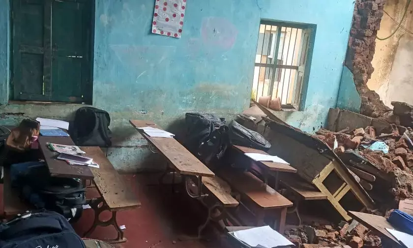 ಶಿವಮೊಗ್ಗ | ಮಳೆಯ ಅಬ್ಬರಕ್ಕೆ ಸರಕಾರಿ ಶಾಲೆಯ ಗೋಡೆ ಕುಸಿತ : ತಪ್ಪಿದ ಅನಾಹುತ