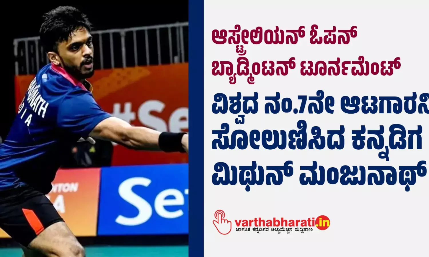 ಆಸ್ಟ್ರೇಲಿಯನ್ ಓಪನ್ ಬ್ಯಾಡ್ಮಿಂಟನ್ ಟೂರ್ನಮೆಂಟ್: ವಿಶ್ವದ ನಂ.7ನೇ ಆಟಗಾರನಿಗೆ ಸೋಲುಣಿಸಿದ ಕನ್ನಡಿಗ ಮಿಥುನ್ ಮಂಜುನಾಥ್