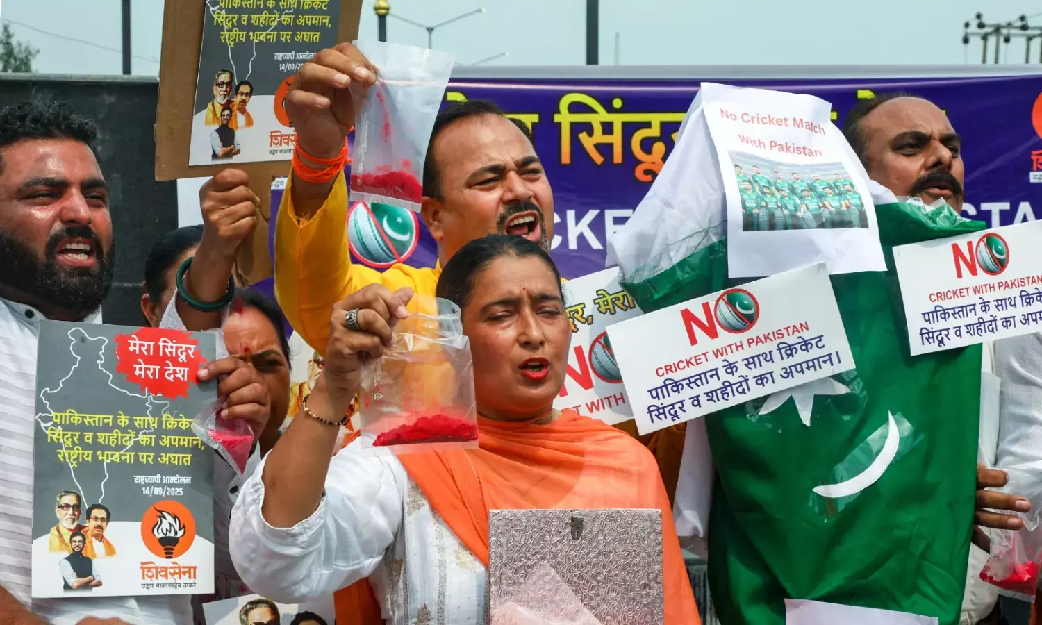 ಭಾರತ–ಪಾಕಿಸ್ತಾನ ಪಂದ್ಯ ವಿರೋಧಿಸಿ ಪ್ರತಿಭಟನೆ (Photo: PTI)