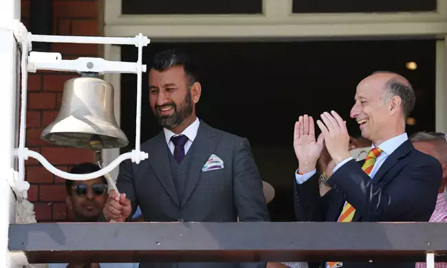 3ನೇ ದಿನದಾಟಕ್ಕಿಂತ ಮೊದಲು ಲಾರ್ಡ್ಸ್ನಲ್ಲಿ ಗಂಟೆ ಬಾರಿಸಿದ ಚೇತೇಶ್ವರ ಪೂಜಾರ