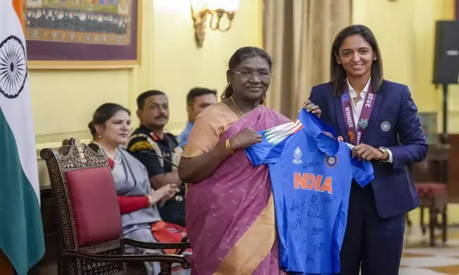 ರಾಷ್ಟ್ರಪತಿ ದ್ರೌಪದಿ ಮುರ್ಮುಗೆ ಜೆರ್ಸಿ ಪ್ರದಾನಿಸಿದ ವಿಶ್ವಕಪ್ ವಿಜೇತ ಭಾರತ ಮಹಿಳಾ ತಂಡ