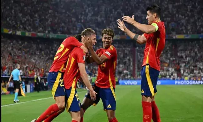 ಬುಧವಾರ ಮ್ಯೂನಿಚ್ ಫುಟ್ಬಾಲ್ ಅರೆನಾದಲ್ಲಿ ನಡೆದ ಸೆಮಿ ಫೈನಲ್ ಪಂದ್ಯದಲ್ಲಿ ಆರಂಭಿಕ ಹಿನ್ನಡೆಯಿಂದ ಚೇತರಿಸಿಕೊಂಡ ಸ್ಪೇನ್ ತಂಡ 12 ವರ್ಷಗಳ ನಂತರ ಮೊದಲ ಬಾರಿ ಪ್ರಮುಖ ಪಂದ್ಯಾವಳಿಯಲ್ಲಿ ಪ್ರಶಸ್ತಿ ಸುತ್ತಿಗೇರಿದೆ.