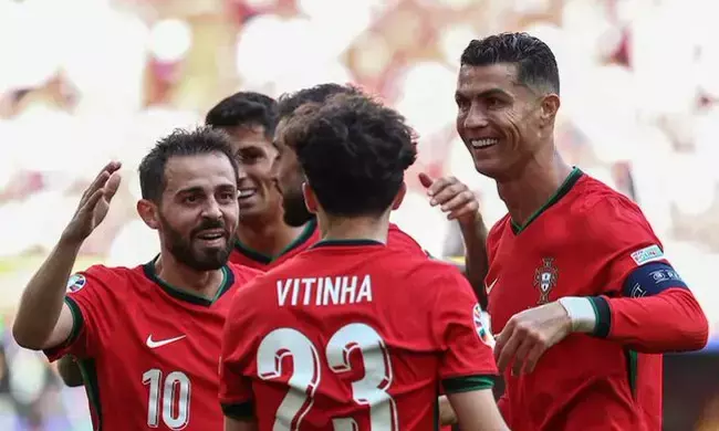 ಹೊಸದಿಲ್ಲಿ: ಕ್ರಿಸ್ಟಿಯಾನೊ ರೊನಾಲ್ಡೊ ನೇತೃತ್ವದ ಪೋರ್ಚುಗಲ್ ತಂಡ ಶನಿವಾರ ನಡೆದ ಯೂರೊ ಕಪ್-2024 ಟೂರ್ನಿಯ ಪಂದ್ಯದಲ್ಲಿ ಟರ್ಕಿ ವಿರುದ್ಧ 3-0 ಗೋಲುಗಳ ಸುಲಭ ಜಯ ಸಾಧಿಸಿ ಪ್ರಿ ಕ್ವಾರ್ಟರ್ ಫೈನಲ್ ಹಂತ ತಲುಪಿತು.
