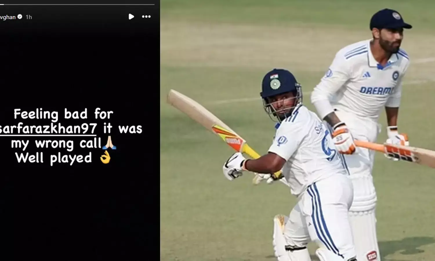 ಸರ್ಫರಾಝ್ ಖಾನ್ 62 ರನ್ ಗಳಿಸಿ ಬ್ಯಾಟಿಂಗ್ ಮಾಡುತ್ತಿದ್ದಾಗ, ಒಂದು ರನ್ ಗಳಿಸುವ ಮೂಲಕ ತಮ್ಮ ನಾಲ್ಕನೆ ಟೆಸ್ಟ್ ಶತಕ ಪೂರೈಸುವ ಯತ್ನಕ್ಕೆ ರವೀಂದ್ರ ಜಡೇಜಾ ಮುಂದಾದರು. ಆದರೆ, ಚೊಚ್ಚಲ ಟೆಸ್ಟ್ ಪಂದ್ಯವಾಡುತ್ತಿರುವ ಸರ್ಫರಾಝ್ ಖಾನ್ ಅವರನ್ನು ಹಿಂದಕ್ಕೆ ಹೋಗುವಂತೆ ಸೂಚಿಸಿದರು. ಸರ್ಫರಾಝ್ ಖಾನ್ ಮತ್ತೆ ಕ್ರೀಸ್ಗೆ ಮರಳುವ ವೇಳೆಗೆ ತೀರಾ ವಿಳಂಬವಾಗಿತ್ತು. ಇದರಿಂದಾಗಿ ಅತ್ಯುತ್ತಮ ಲಯದಲ್ಲಿದ್ದ ಸರ್ಫರಾಝ್ ಖಾನ್ ನಿರಾಸೆಯಿಂದ ಪೆವಿಲಿಯನ್ಗೆ ಮರಳಬೇಕಾಯಿತು.