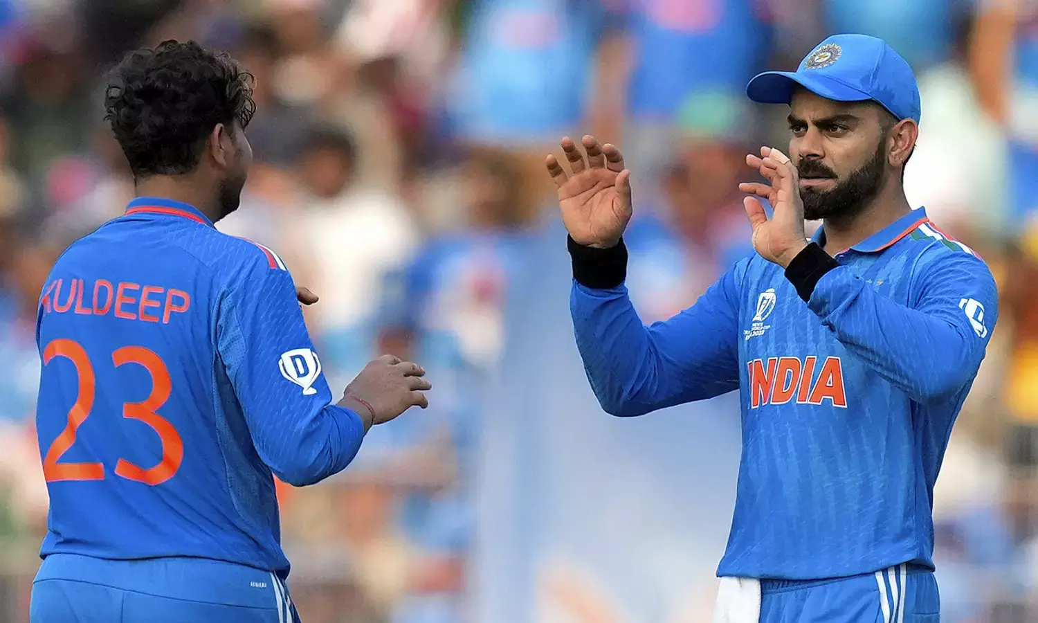 ಕೊಹ್ಲಿ ತಾನಾಡಿದ 28ನೇ ವಿಶ್ವಕಪ್ ಪಂದ್ಯದಲ್ಲಿ 15ನೇ ಕ್ಯಾಚ್ ಪಡೆದರು. ಭಾರತದ ಪರ 14 ಕ್ಯಾಚ್ ಗಳನ್ನು ಪಡೆದಿದ್ದ ಅನಿಲ್ ಕುಂಬ್ಳೆ ಅವರ ಹೆಸರಲ್ಲಿದ್ದ ದಾಖಲೆಯನ್ನು ಮುರಿದರು. ಪಟ್ಟಿಯಲ್ಲಿ ಕುಂಬ್ಳೆಯ ನಂತರ ಹಿರಿಯ ಕ್ರಿಕೆಟಿಗರಾದ ಕಪಿಲ್ದೇವ್ ಹಾಗೂ ಸಚಿನ್ ತೆಂಡುಲ್ಕರ್ ಅವರಿದ್ದಾರೆ. ಕಪಿಲ್ ಹಾಗೂ ಸಚಿನ್ ತಲಾ 12 ಕ್ಯಾಚ್ ಗಳನ್ನು ಪಡೆದಿದ್ದಾರೆ.