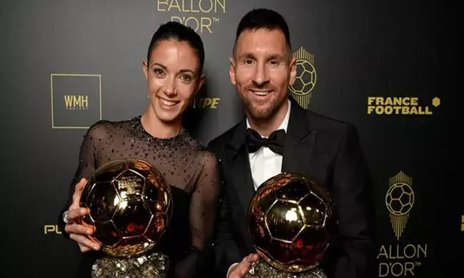 ಪ್ಯಾರಿಸ್: ಅರ್ಜೆಂಟೀನದ ಫುಟ್ಬಾಲ್ ಸ್ಟಾರ್ ಲಿಯೊನೆಲ್ ಮೆಸ್ಸಿ ಸೋಮವಾರ ಪ್ಯಾರಿಸ್ನಲ್ಲಿ ನಡೆದ ಭವ್ಯ ಸಮಾರಂಭದಲ್ಲಿ 8ನೇ ಬಾರಿ ಪ್ರತಿಷ್ಠಿತ ಬ್ಯಾಲನ್ ಡಿʼಒರ್ ಪ್ರಶಸ್ತಿ ಸ್ವೀಕರಿಸಿದ್ದಾರೆ. ಸ್ಪೇನ್ನ ವಿಶ್ವಕಪ್ ಚಾಂಪಿಯನ್ ಐಟಾನಾ ಬೊನ್ಮಟಿ ಅವರು ಮಹಿಳಾ ವಿಭಾಗದಲ್ಲಿ ಬ್ಯಾಲನ್ ಡಿʼಒರ್ ಪ್ರಶಸ್ತಿಯನ್ನು ಗೆದ್ದುಕೊಂಡರು.