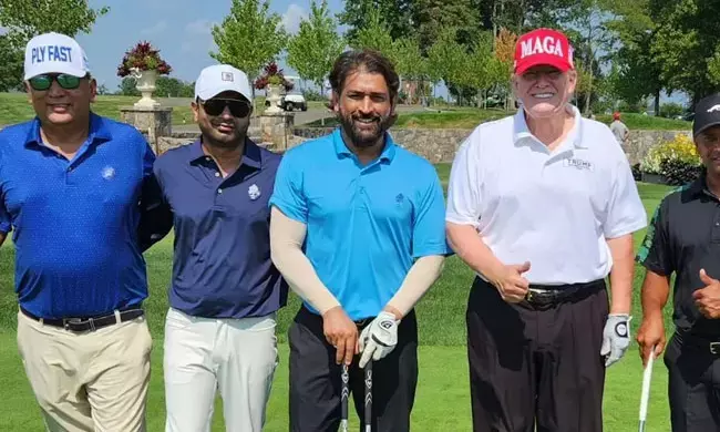ಹೊಸದಿಲ್ಲಿ: ಭಾರತ ಕ್ರಿಕೆಟ್ ತಂಡದ ಮಾಜಿ ಕಪ್ತಾನ ಮಹೇಂದ್ರ ಸಿಂಗ್ ಧೋನಿ ಮತ್ತು ಅಮೆರಿಕಾದ ಮಾಜಿ ಅಧ್ಯಕ್ಷ ಡೊನಾಲ್ಡ್ ಟ್ರಂಪ್ ಅವರು ಅಮೆರಿಕಾದಲ್ಲಿ ಒಂದು ಸುತ್ತಿನ ಸೌಹಾರ್ದ ಗಾಲ್ಫ್ ಆಟ ಆಡಿರುವುದು ಧೋನಿ ಅಭಿಮಾನಿಗಳಲ್ಲಿ ಸಂಚಲನ ಸೃಷ್ಟಿಸಿದೆ. ಡೊನಾಲ್ಡ್ ಟ್ರಂಪ್ ಅವರ ಆಹ್ವಾನದ ಮೇರೆಗೆ ಧೋನಿ ಗಾಲ್ಫ್ ಆಡಿದ್ದಾರೆಂದು ತಿಳಿದು ಬಂದಿದೆ.
