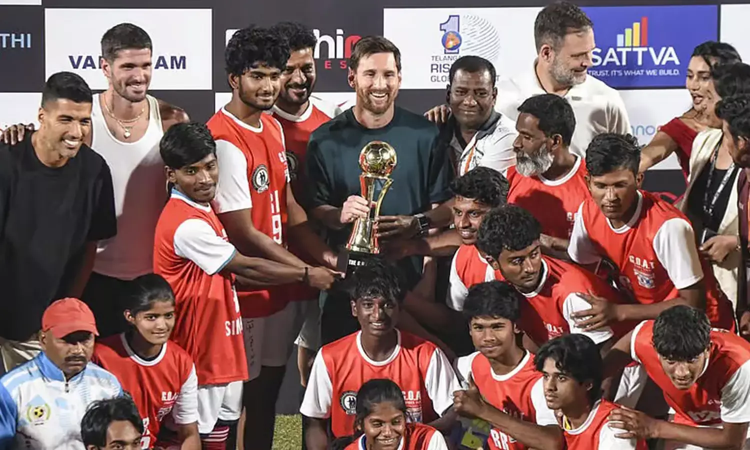 ‘GOAT Tour of India’ ಪ್ರವಾಸದ ಅಂಗವಾಗಿ ಶನಿವಾರ ಸಂಜೆ ರಾಜೀವ್ ಗಾಂಧಿ ಅಂತರರಾಷ್ಟ್ರೀಯ ಕ್ರೀಡಾಂಗಣದಲ್ಲಿ ನಡೆದ ಕಾರ್ಯಕ್ರಮದಲ್ಲಿ ಮೆಸ್ಸಿ ಭಾಗವಹಿಸಿದ್ದರು. ಹೈದರಾಬಾದ್ ಗೆ ಆಗಮಿಸಿದ ಮೆಸ್ಸಿಯನ್ನು ಮುಖ್ಯಮಂತ್ರಿ ರೇವಂತ್ ರೆಡ್ಡಿ ಆತ್ಮೀಯವಾಗಿ ಸ್ವಾಗತಿಸಿದರು. ಕಾರ್ಯಕ್ರಮದಲ್ಲಿ ರಾಹುಲ್ ಗಾಂಧಿ ಉಪಸ್ಥಿತರಿದ್ದರು.