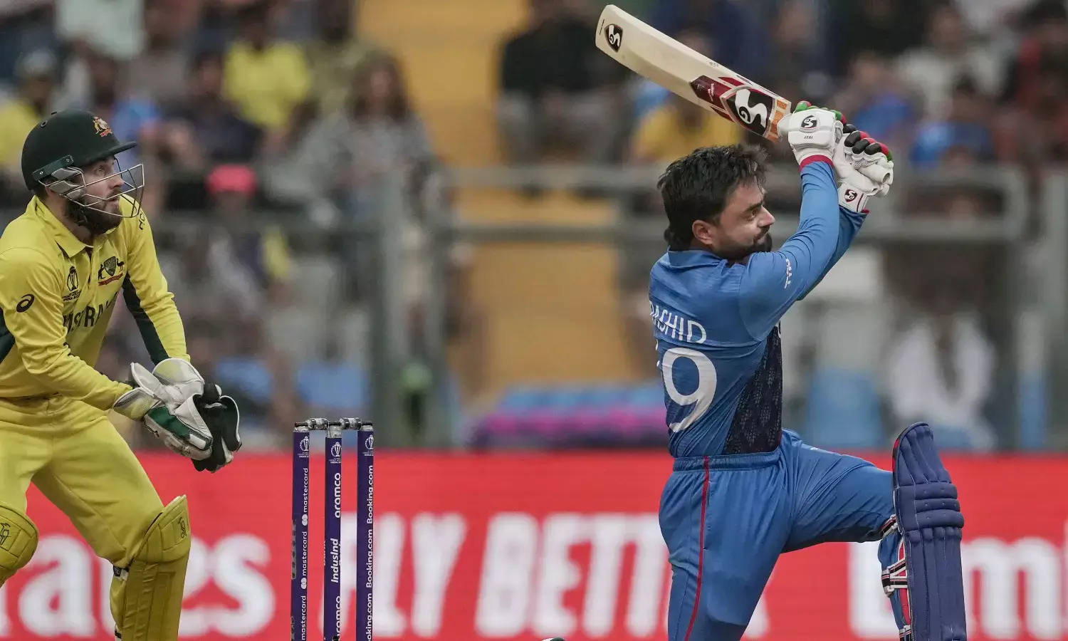 ಆಸೀಸ್ನ ಹಿರಿಯ ಬೌಲರ್ ಮಿಷೆಲ್ ಸ್ಟಾರ್ಕ್ ಎಸೆದ ಕೊನೆಯ ಓವರ್ನಲ್ಲಿ ರಶೀದ್ 16 ರನ್ ಗಳಿಸಿ ವಾಂಖೆಡೆಯಲ್ಲಿ ನೆರೆದಿದ್ದ ಪ್ರೇಕ್ಷಕರನ್ನು ರಂಜಿಸಿದರು.