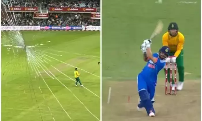 ಜೋಹಾನ್ಸ್ಬರ್ಗ್: ದಕ್ಷಿಣ ಆಫ್ರಿಕಾ ವಿರುದ್ಧ ಮಂಗಳವಾರ ನಡೆದಿದ್ದ ಮಳೆಬಾಧಿತ 2ನೇ ಟ್ವೆಂಟಿ-20 ಪಂದ್ಯದಲ್ಲಿ ಭಾರತವು 5 ವಿಕೆಟ್ಗಳಿಂದ ಸೋಲು ಕಂಡಿದೆ. ಆದರೆ ರಿಂಕು ಸಿಂಗ್ ಮೊದಲ ಟಿ-20 ಅರ್ಧಶತಕ ಸಿಡಿಸಿ ಗಮನ ಸೆಳೆದಿದ್ದರು. ಅರ್ಧಶತಕದ ಹಾದಿಯಲ್ಲಿ ಎರಡು ಸಿಕ್ಸರ್ಗಳನ್ನು ಸಿಡಿಸಿದ್ದರು. ಇದರಲ್ಲಿ ಒಂದು ಸಿಕ್ಸರ್ ಕಾಮೆಂಟೆರಿ ಬಾಕ್ಸ್ನ ಕಿಟಕಿ ಗಾಜಿಗೆ ಅಪ್ಪಳಿಸಿದೆ.