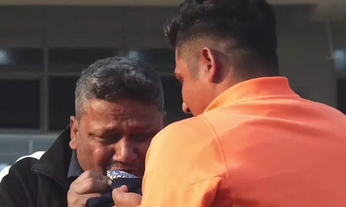 ಟಾಸ್ಗೂ ಮುನ್ನ ನಡೆದ ಕ್ಯಾಪ್ ಹಸ್ತಾಂತರ ಕಾರ್ಯಕ್ರಮದಲ್ಲಿ ತಮ್ಮ ಪುತ್ರನೂ ಭಾಗಿಯಾಗಿದ್ದನ್ನು ಕಂಡ ಅವರ ತಂದೆ ನೌಶಾದ್ ಖಾನ್ ಭಾವುಕರಾಗುದ್ದು, ಘಟನೆಯ ವಿಡಿಯೋ ಸಾಮಾಜಿಕ ಜಾಲತಾಣಗಳಲ್ಲಿ ವೈರಲ್ ಆಗಿದೆ.