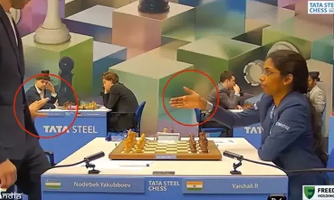 ವೈಶಾಲಿ ಕೈಕುಲುಕಲು ನಿರಾಕರಿಸಿದ ಉಝ್ಬೆಕಿಸ್ತಾನದ ನೊಡಿರ್ಬೇಕ್ ಯಾಕೂಬೋವ್!