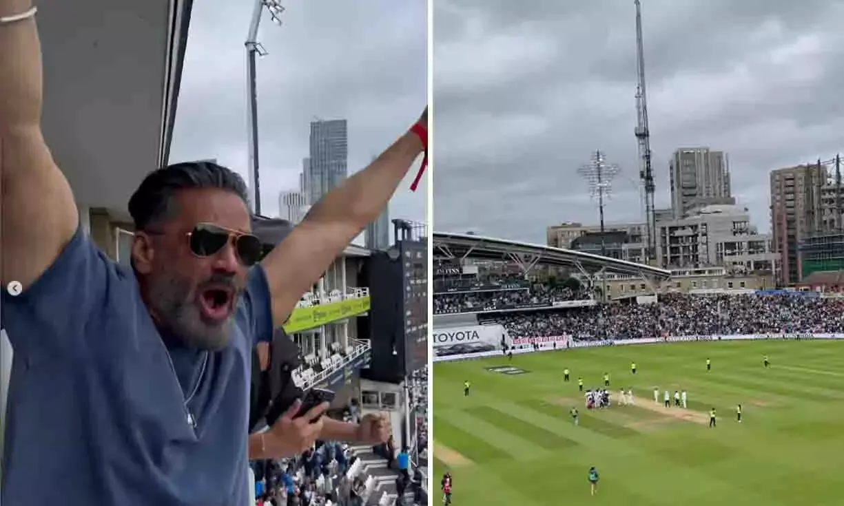 ಲಂಡನ್: ಇಂಗ್ಲೆಂಡ್ ತಂಡದ ವಿರುದ್ಧ 5ನೇ ಹಾಗೂ ಅಂತಿಮ ಟೆಸ್ಟ್ನ ಅಂತಿಮ ದಿನ ಭಾರತ ತಂಡ ಆರು ರನ್ಗಳಿಂದ ಎದುರಾಳಿಯನ್ನು ರೋಚಕವಾಗಿ ಸೋಲಿಸಿರುವುದು ವಿಶ್ವಾದ್ಯಂತ ಕ್ರಿಕೆಟ್ ಜ್ವರ ವ್ಯಾಪಿಸಲು ಕಾರಣವಾಯಿತು. ಆದರೆ ಆನ್ಲೈನ್ನಲ್ಲಿ ಎಲ್ಲರ ಹೃದಯ ಗೆದ್ದದ್ದು ಭಾರತೀಯ ಬ್ಯಾಟ್ಸ್ಮನ್ ಕೆ.ಎಲ್.ರಾಹುಲ್ ಅವರ ಮಾವ ಸುನೀಲ್ ಶೆಟ್ಟಿ ಪ್ರೇಕ್ಷಕರ ಗ್ಯಾಲರಿಯಲ್ಲಿ ಹುಚ್ಚೆದ್ದು ಕುಣಿದ ವೀಡಿಯೊ.