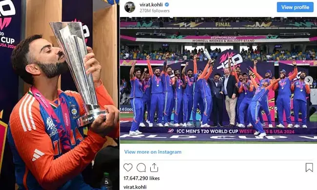 ವಿಶ್ವಕಪ್ ಗೆಲುವು | ಕೊಹ್ಲಿಯ ಇನ್ಸ್ಟಾಗ್ರಾಮ್ ಪೋಸ್ಟ್ಗೆ 1.7 ಕೋಟಿ ಲೈಕ್ಸ್!