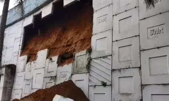 ಹೊಳೆನರಸೀಪುರ ಬಳಿ ಹಾಸನ–ಮೈಸೂರು ಹೆದ್ದಾರಿ ಮೇಲ್ಸೇತುವೆ ತಡೆಗೋಡೆ ಕುಸಿತ