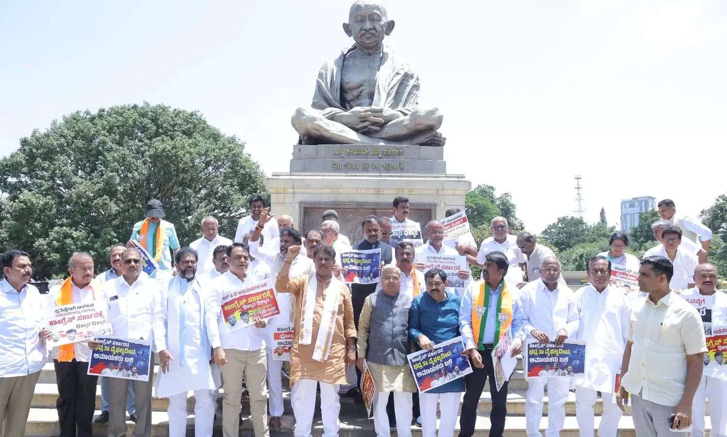 ರವಿವಾರ ವಿಧಾನಸೌಧದಲ್ಲಿನ ಗಾಂಧಿ ಪ್ರತಿಮೆ ಬಳಿ ವಿಪಕ್ಷ ನಾಯಕರಾದ ಆರ್.ಅಶೋಕ್, ಛಲವಾದಿ ನಾರಾಯಣಸ್ವಾಮಿ ನೇತೃತ್ವದಲ್ಲಿ ಧರಣಿ ನಡೆಸಿದ ಬಿಜೆಪಿ ಮುಖಂಡರು, ರಾಜ್ಯ ಸರಕಾರದ ವಿರುದ್ಧ ಧಿಕ್ಕಾರದ ಘೋಷಣೆ ಕೂಗಿ, ಮುಖ್ಯಮಂತ್ರಿ, ಉಪಮುಖ್ಯಮಂತ್ರಿ ಹಾಗೂ ಗೃಹ ಸಚಿವರು ಕೂಡಲೇ ರಾಜೀನಾಮೆ ನೀಡಬೇಕೆಂದು ಒತ್ತಾಯಿಸಿದರು.