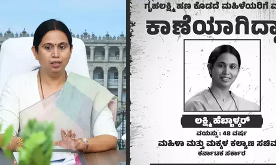 ʼಗೃಹಲಕ್ಷ್ಮಿʼಯರ ಕಿವಿ ಮೇಲೆ ಹೂವಿಟ್ಟು ಸಚಿವೆ ಲಕ್ಷ್ಮಿ ಹೆಬ್ಬಾಳ್ಕರ್ ಕಾಣೆಯಾಗಿದ್ದಾರೆ ಎಂದು ಪೋಸ್ಟರ್ ಹಂಚಿಕೊಂಡ ಬಿಜೆಪಿ