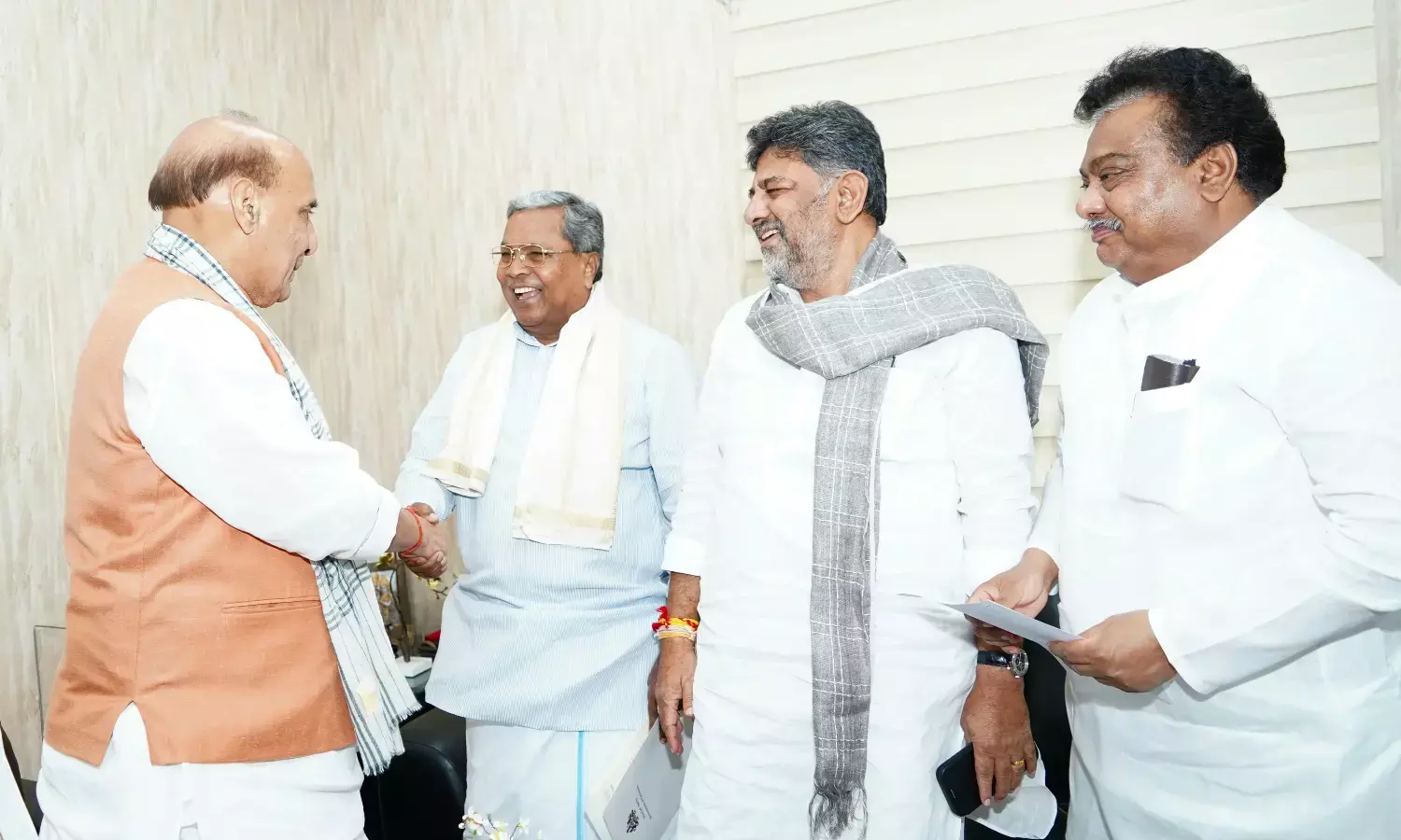 ರಕ್ಷಣಾ ರಾಜನಾಥ್ ಸಿಂಗ್ ಭೇಟಿಯಾದ ಮುಖ್ಯಮಂತ್ರಿ ಸಿದ್ದರಾಮಯ್ಯ ನೇತೃತ್ವದ ನಿಯೋಗ