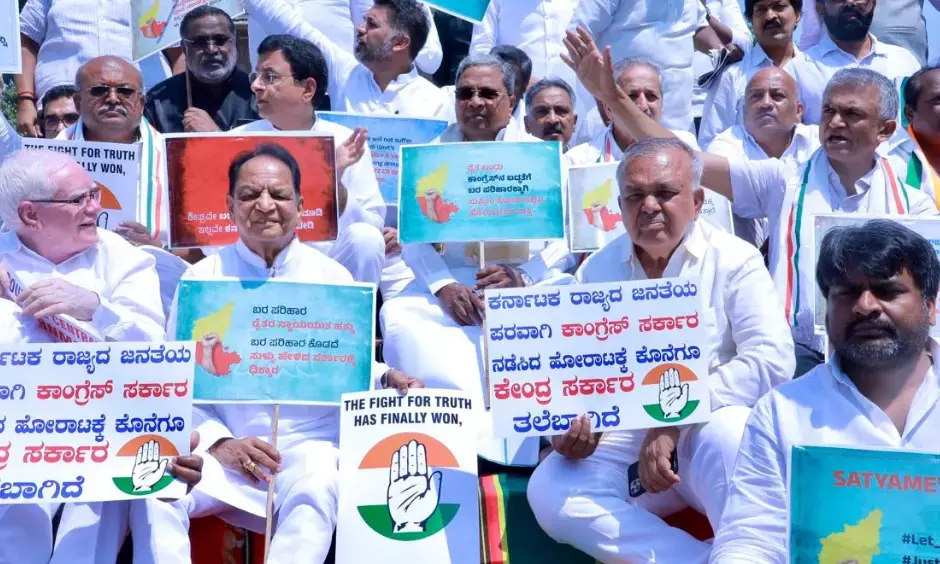 ಬರ ಪರಿಹಾರ ಬಿಡುಗಡೆ ಮಾಡುವಂತೆ ಆಗ್ರಹಿಸಿ ಕೇಂದ್ರ ಸರ್ಕಾರದ ವಿರುದ್ಧ ಕಾಂಗ್ರೆಸ್ ಧರಣಿ