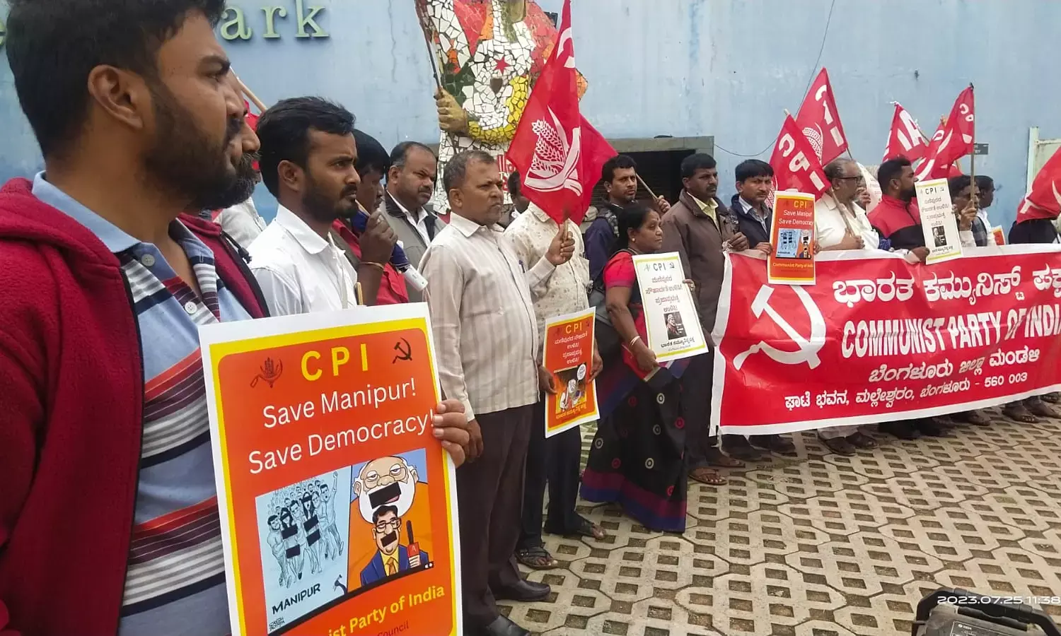 ಮಣಿಪುರದ ಸಿಎಂ ರಾಜೀನಾಮೆಗೆ ಆಗ್ರಹಿಸಿ ಫ್ರೀಡಂ ಪಾರ್ಕ್ನಲ್ಲಿ ಸಿಪಿಐ ಧರಣಿ