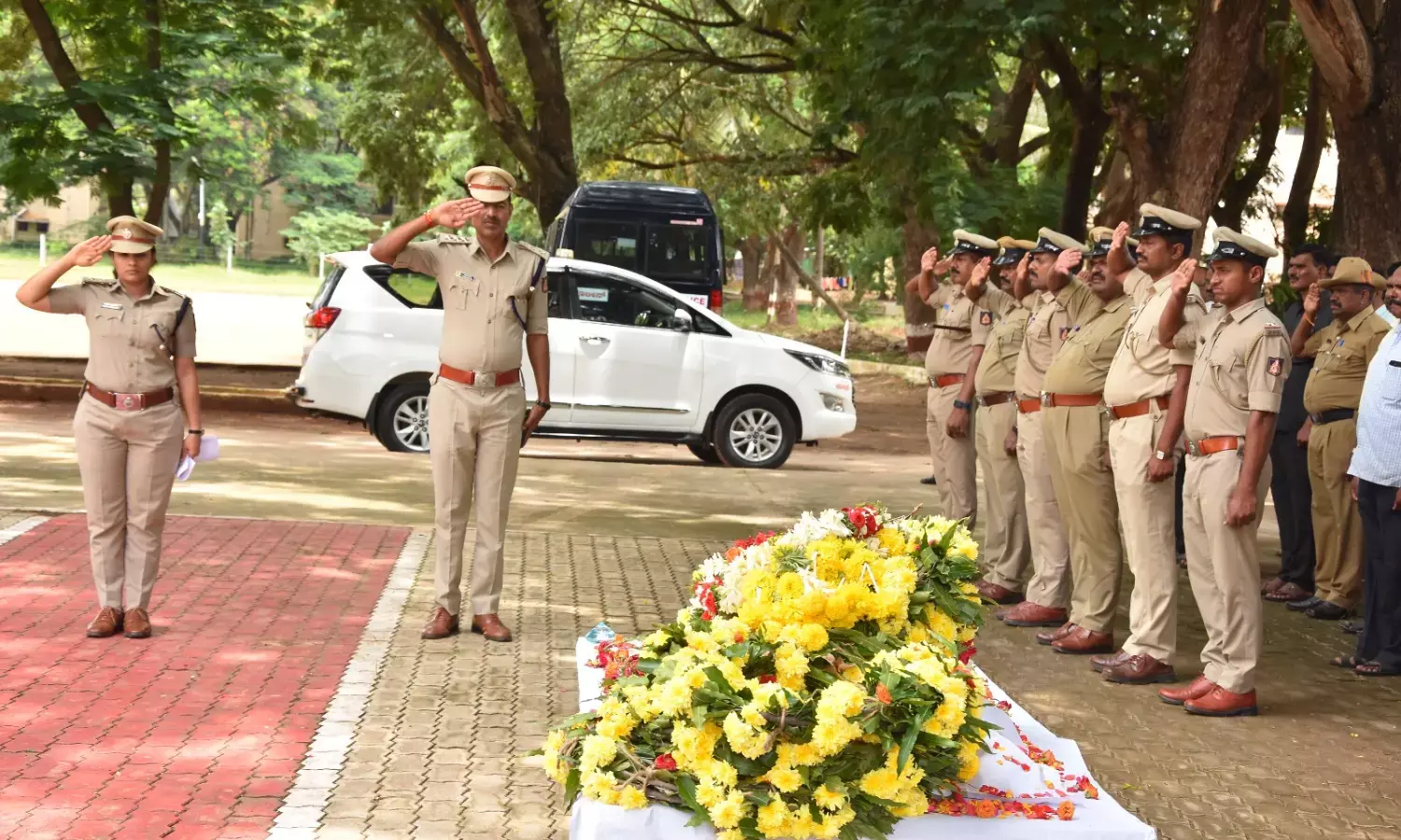 ಜಿಲ್ಲಾ ಪೊಲೀಸ್ ವರಿಷ್ಠಾಧಿಕಾರಿ ಉಮಾ ಪ್ರಶಾಂತ್, ಡಿವೈಎಸ್ಪಿ ಪ್ರಕಾಶ್ ಸೇರಿ ಪೊಲೀಸ್ ಇಲಾಖೆಯ ಅಧಿಕಾರಿ, ಸಿಬ್ಬಂದಿ ಅಂತಿಮ ನಮನ ಸಲ್ಲಿಸಿದರು.