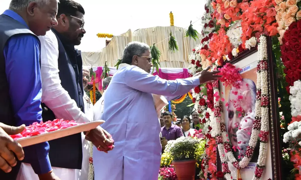 ದೇವರಾಜ ಅರಸು ಜನ್ಮ ದಿನಾಚರಣೆ: ಅರಸು ಪ್ರತಿಮೆಗೆ ಸಿಎಂ ಸಿದ್ದರಾಮಯ್ಯ ಮಾಲಾರ್ಪಣೆ