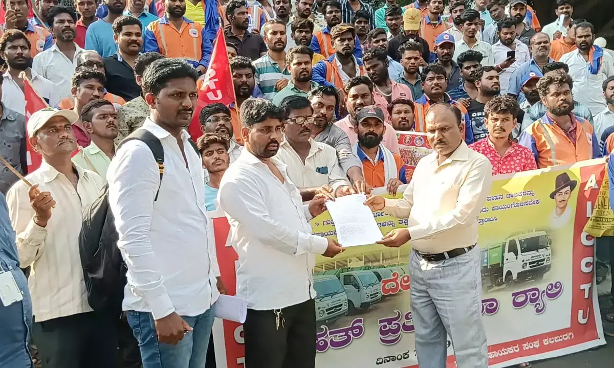 ಬೆಂಗಳೂರು, ಸೆ.12: ರಾಜ್ಯದ ಎಲ್ಲ ನಗರ ಸ್ಥಳೀಯ ಸಂಸ್ಥೆಗಳಲ್ಲಿ ತ್ಯಾಜ್ಯ ಸಂಗ್ರಹಿಸುವ ಮತ್ತು ವಿಲೇವಾರಿ ಮಾಡುವ ವಾಹನಗಳ ಚಾಲಕರು ಮತ್ತು ಸಹಾಯಕರನ್ನು ತಕ್ಷಣವೇ ನೇರವೇತನ ಪಾವತಿಯಡಿ ತಂದು, ಖಾಯಂಗೊಳಿಸಬೇಕು ಎಂದು ಒತ್ತಾಯಿಸಿ ಪೌರಕಾರ್ಮಿಕರು ಮಂಗಳವಾದಂದು ರಾಜ್ಯದ ವಿವಿಧ ಜಿಲ್ಲಾ ಕೇಂದ್ರಗಳಲ್ಲಿ ಧರಣಿ ನಡೆಸಿದರು.