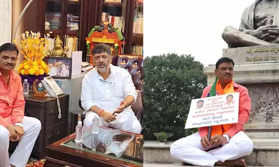 ಅನುದಾನ ಬಿಡುಗಡೆಗೆ ಪಟ್ಟು; ಡಿಕೆಶಿಯನ್ನು ಪತ್ತೆಹಚ್ಚಿ ಕಾಲಿಗೆ ಬಿದ್ದ ಬಿಜೆಪಿ ಶಾಸಕ ಮುನಿರತ್ನ..!