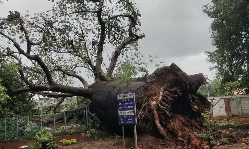 ಹಾವೇರಿ: ಧರೆಗುರುಳಿದ ಸಾವಿರಾರು ವರ್ಷಗಳ ಐತಿಹಾಸಿಕ ದೊಡ್ಡ ಹುಣಸೆ ಮರ