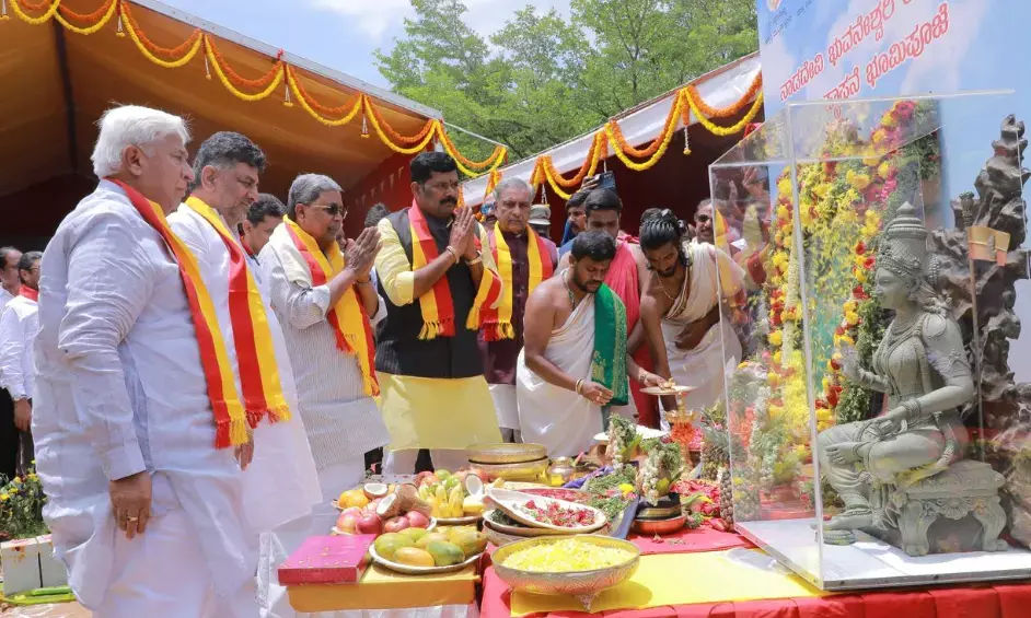 ಅವರು ಇಂದು ಕನ್ನಡ ಮತ್ತು ಸಂಸ್ಕೃತಿ ಇಲಾಖೆ ವತಿಯಿಂದ ಕರ್ನಾಟಕ ನಾಮಕರಣ ಸುವರ್ಣ ಮಹೋತ್ಸವ ಅಂಗವಾಗಿ ವಿಧಾನಸೌಧದ ಪಶ್ಚಿಮದ್ವಾರದ ಬಳಿ ನಾಡದೇವಿ ಭುವನೇಶ್ವರಿ ದೇವಿಯ ಕಂಚಿನ ಪ್ರತಿಮೆ ನಿರ್ಮಿಸಲು ಭೂಮಿ ಪೂಜೆ ನೆರವೇರಿಸಿದ ನಂತರ ಕಾರ್ಯಕ್ರಮವನ್ನು ಉದ್ದೇಶಿಸಿ ಮಾತನಾಡಿದರು.