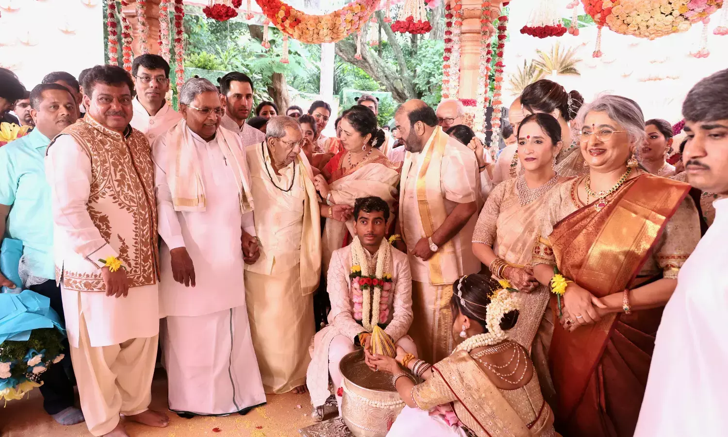 ಕುಟುಂಬದ ಹಿರಿಯರು ಮತ್ತು ಬಂಧುಗಳ ಸಮ್ಮುಖದಲ್ಲಿ ವಿವಾಹ ಮಹೋತ್ಸವವು ನೆರವೇರಿತು.ಮುಖ್ಯಮಂತ್ರಿ ಸಿದ್ದರಾಮಯ್ಯ, ಉಪ ಮುಖ್ಯಮಂತ್ರಿ ಡಿ.ಕೆ.ಶಿವಕುಮಾರ್, ಮಹಾರಾಷ್ಟ್ರದ ಮಾಜಿ ಸಿಎಂ ಸುಶೀಲ್ ಕುಮಾರ್ ಶಿಂದೆ, ಎಐಸಿಸಿ ಪ್ರಧಾನ ಕಾರ್ಯದರ್ಶಿ ಕೆ ಸಿ ವೇಣುಗೋಪಾಲ್, ಮಾಜಿ ಮುಖ್ಯಮಂತ್ರಿಗಳಾದ ಎಸ್.ಎಂ.ಕೃಷ್ಣ, ಜಗದೀಶ ಶೆಟ್ಟರ್, ಬಸವರಾಜ ಬೊಮ್ಮಾಯಿ, ಸಚಿವರಾದ ರಾಮಲಿಂಗಾರೆಡ್ಡಿ, ಚೆಲುವರಾಯಸ್ವಾಮಿ, ಕೃಷ್ಣಬೈರೇಗೌಡ, ಮಧು ಬಂಗಾರಪ್ಪ, ದರ್ಶನಾಪುರ, ಶಿವಾನಂದಪಾಟೀಲ, ದಿನೇಶ ಗುಂಡೂರಾವ್ ಪ್ರಿಯಾಂಕ್ ಖರ್ಗೆ, ಶರಣ ಪ್ರಕಾಶ ಪಾಟೀಲ, ಲಕ್ಷ್ಮಿ ಹೆಬ್ಬಾಳ್ಕರ್, ಶಾಸಕರಾದ ಎಚ್ .ಡಿ. ರೇವಣ್ಣ, ಕೋಟಾ ಶ್ರೀನಿವಾಸಪೂಜಾರಿ ಬಸನಗೌಡ ಪಾಟೀಲ ಯತ್ನಾಳ, ಮಂಜುನಾಥ ಭಂಡಾರಿ, ಸಂಸದರಾದ ಪಿ.ಸಿ.ಮೋಹನ್, ರಮೇಶ ಜಿಗಜಿಣಗಿ ಸೇರಿದಂತೆ ಸರ್ವಪಕ್ಷಗಳ ಶಾಸಕರು, ಸಂಸದರು, ಮುಖಂಡರು ವಧು-ವರರನ್ನು ಆಶೀರ್ವದಿಸಿ, ಶುಭ ಕೋರಿದರು.