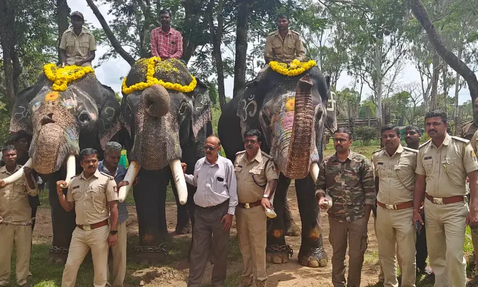ಮೈಸೂರು ದಸರಾ | 'ಗಜಪಯಣ'ದಲ್ಲಿ ಭಾಗವಹಿಸಲು ದುಬಾರೆ ಮತ್ತುಹಾರಂಗಿ ಶಿಬಿರದಿಂದ ಹೊರಟ ಸಾಕಾನೆಗಳು