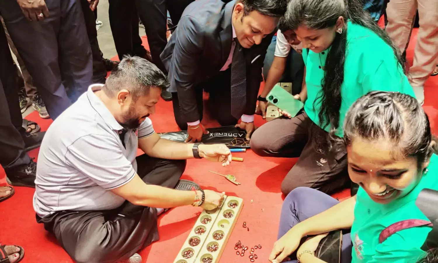 - ವಿದ್ಯಾರ್ಥಿಗಳ ಜೊತೆ ಅಟ ಆಡುತ್ತಿರುವ ಸಚಿವರು