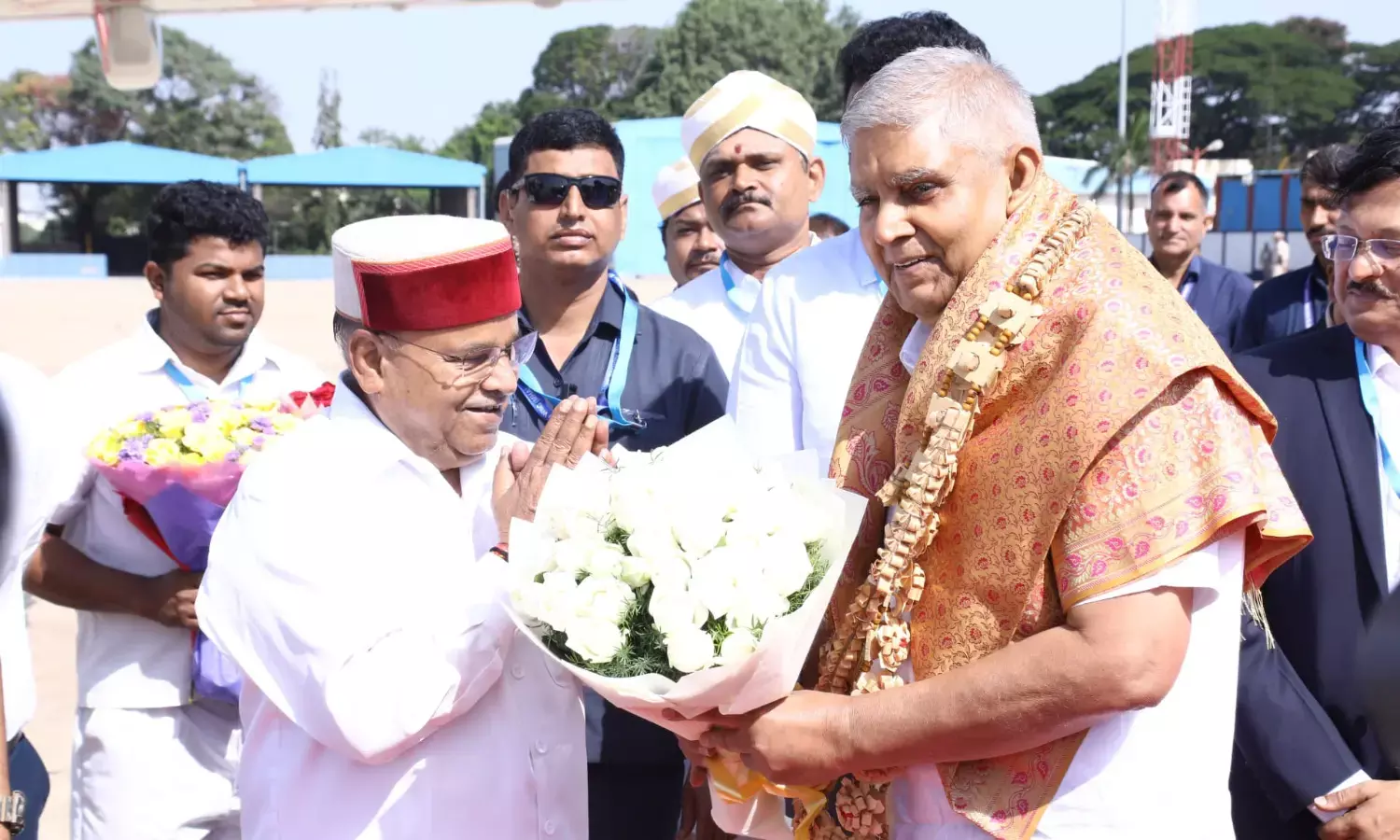 ಬೆಂಗಳೂರು, ಜೂನ್ 08, (ಕರ್ನಾಟಕ ವಾರ್ತೆ): ಬೆಂಗಳೂರಿನಲ್ಲಿ ವಿವಿಧ ಕಾರ್ಯಕ್ರಮಗಳಲ್ಲಿ ಭಾಗವಹಿಸುವ ಸಲುವಾಗಿ ನಿನ್ನೆ ಜೂನ್ 07 ರಂದು ಬೆಂಗಳೂರಿಗೆ ಆಗಮಿಸಿದ್ದ ಗೌರವಾನ್ವಿತ ಉಪ ರಾಷ್ಟ್ರಪತಿಗಳಾದ ಜಗದೀಪ್ ಧನಕರ್ ಅವರನ್ನು ಇಂದು ಬೆಂಗಳೂರಿನ ಹೆಚ್.ಎ.ಎಲ್. ವಿಮಾನ ನಿಲ್ದಾಣದಲ್ಲಿ ರಾಜ್ಯದ ಗೌರವಾನ್ವಿತ ರಾಜ್ಯಪಾಲರಾದ ಥಾವರ್ ಚಂದ್ ಗೆಹ್ಲೋಟ್ ಅವರು ಆತ್ಮೀಯವಾಗಿ ಬೀಳ್ಕೊಟ್ಟರು.