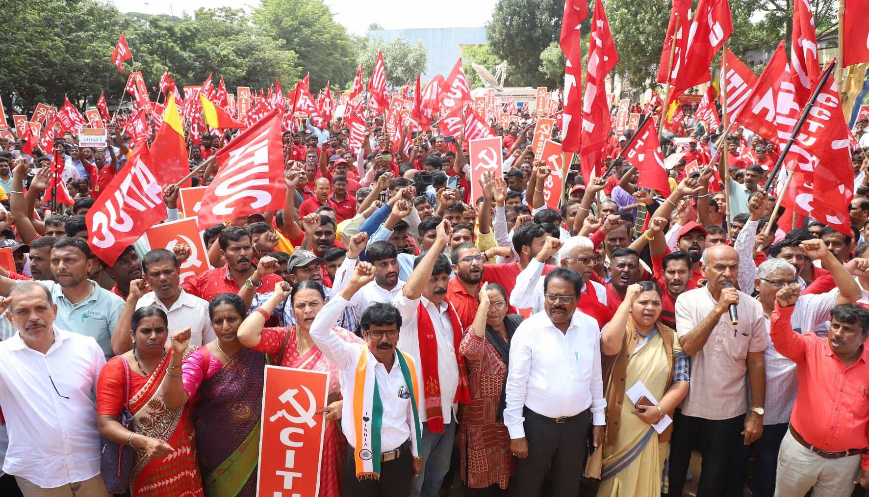 ರಾಜ್ಯದ ಕಾಂಗ್ರೆಸ್ ಸರಕಾರವೂ ಕೇಂದ್ರದ ಬಿಜೆಪಿ ಸರಕಾರದ ದಾರಿಯಲ್ಲೇ ಸಾಗುತ್ತಿದೆ. ಕಾರ್ಮಿಕ ಕಾನೂನುಗಳನ್ನು ಬಂಡವಾಳದಾರರ ಹಿತಾಸಕ್ತಿಯಂತೆ ಬದಲಾವಣೆ ಮಾಡುತ್ತಿದೆ.ಇನ್ನೂ, ಗುತ್ತಿಗೆ ಪದ್ಧತಿ ಕೊನೆಗೊಳಿಸಬೇಕು, ಸರಕಾರಿ ಸ್ವಾಮ್ಯದ ಕಂಪೆನಿಗಳನ್ನು ಖಾಸಗಿಯವರಿಗೆ ಮಾರಾಟ ಮಾಡುವುದನ್ನು ನಿಲ್ಲಿಸಬೇಕು ಹಾಗೂ ಕನಿಷ್ಠ ವೇತನವನ್ನು 26 ಸಾವಿರಕ್ಕೆ ಹೆಚ್ಚಿಸಬೇಕು ಎಂದು ಒತ್ತಾಯಿಸಿದರು.