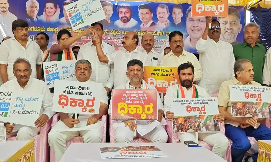 ಬೆಂಗಳೂರು: ಕಾಂಗ್ರೆಸ್ ವರಿಷ್ಠ ರಾಹುಲ್ ಗಾಂಧಿ ಅವರ ಮೇಲೆ ಅಸ್ಸಾಂನಲ್ಲಿ ಬಿಜೆಪಿ ಕಾರ್ಯಕರ್ತರು ನಡೆಸಿದ ದಾಳಿ ಖಂಡಿಸಿ ಕರ್ನಾಟಕ ಪ್ರದೇಶ ಕಾಂಗ್ರೆಸ್ ಸಮಿತಿ ಬೆಂಗಳೂರಿನ ಫ್ರೀಡಂ ಪಾರ್ಕ್ ಬಳಿ ಮಂಗಳವಾರ ನಡೆಯಿತು.