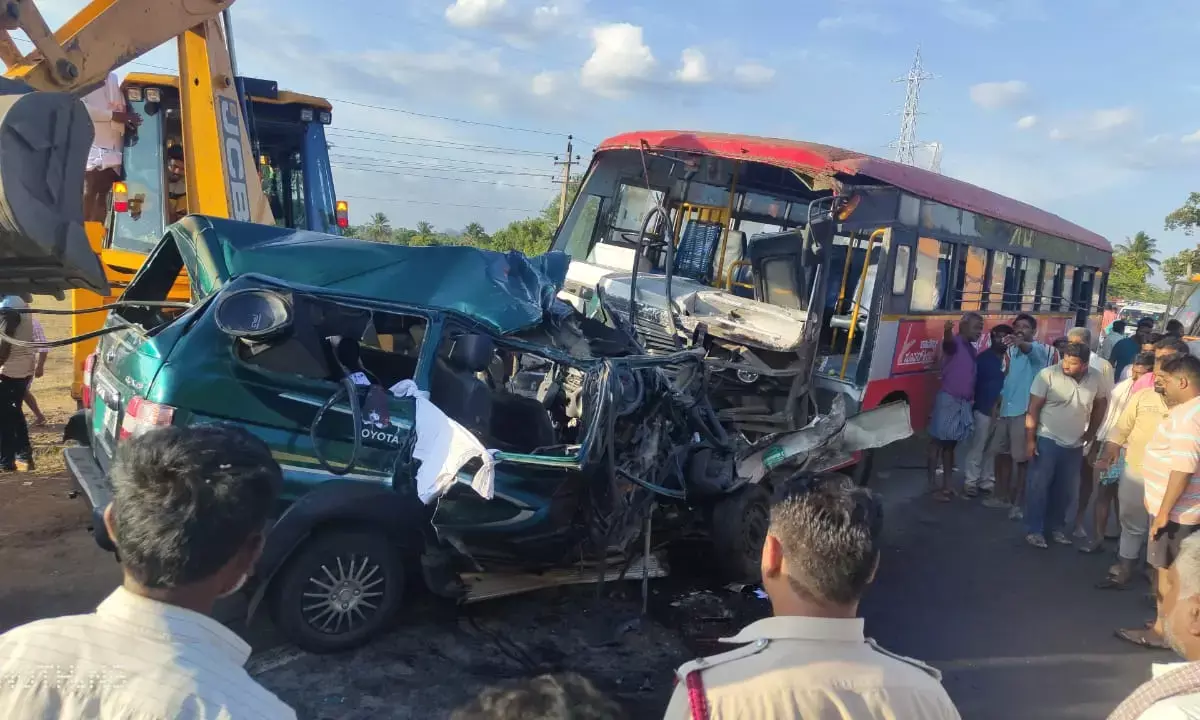ರಾಮನಗರ | ಕೆಎಸ್ಸಾರ್ಟಿಸಿ ಬಸ್ ಢಿಕ್ಕಿ; ಕಾರಿನಲ್ಲಿದ್ದ 6 ಮಂದಿ ಸ್ಥಳದಲ್ಲೇ ಮೃತ್ಯು