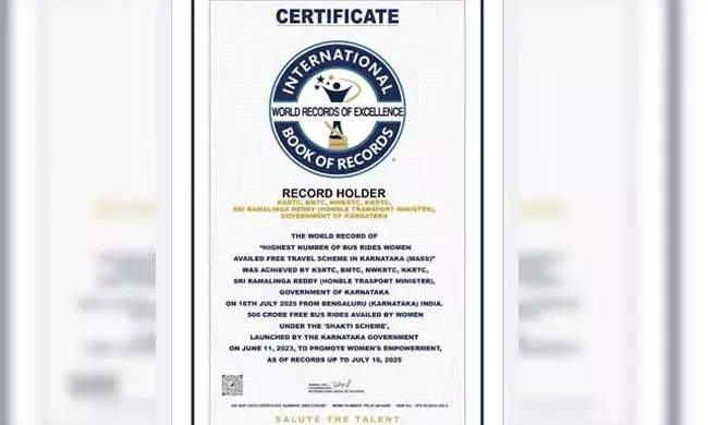 ಸಮಸ್ತ ಕನ್ನಡಿಗರು ಹೆಮ್ಮೆ ಪಡುವ ಕ್ಷಣವಿದು. ನಮ್ಮ ಸರ್ಕಾರ ಜಾರಿಗೆ ತಂದ ಗ್ಯಾರಂಟಿ ಯೋಜನೆಗಳಲ್ಲಿ ಒಂದಾದ ʼಶಕ್ತಿʼಯು International Book of Records - World Record of Excellence ಗೆ ಸೇರ್ಪಡೆಗೊಂಡು, ಮತ್ತೊಂದು ಮೈಲಿಗಲ್ಲು ಸಾಧಿಸಿದೆ.