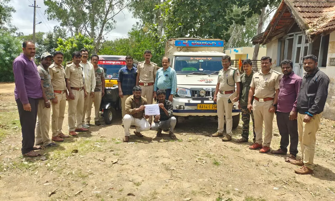 ದಾಳಿಯಲ್ಲಿ 12 ಸಾಗುವಾನಿ ತುಂಡುಗಳು, ಎರಡು ಮೊಬೈಲ್ ,ಒಂದು ಮಹೇಂದ್ರ ಬುಲೇರೋ, ಬಜಾಜ್ ಪ್ಯಾಸೆಂಜರ್ ಆಟೋವನ್ನ ವಶಕ್ಕೆ ಪಡೆಯಲಾಗಿದೆ.ಪ್ರಕರಣದಲ್ಲಿ ತಲೆಮರೆಸಿಕೊಂಡ ಆರೋಪಿಗಳಾದ ಹಾಯ್ ಹೊಳೆ ಗ್ರಾಮದ ವಿಷ್ಣು ಬಿನ್ ಮುರಳಿ,ಭಾರತಿ ನಗರದ ವಾಸಿಗಳಾದ ಪಳನಿ ಬಿನ್ ಕಾಶಿ,ತಿರುಪತಿ ಬಿನ್ ಕೃಷ್ಣಪ್ಪ ಅವರನ್ನು ಬಂದಿಸಲು ಉನ್ನತವಾದ ತಂಡ ರಚನೆ ಮಾಡಲಾಗಿದೆ.