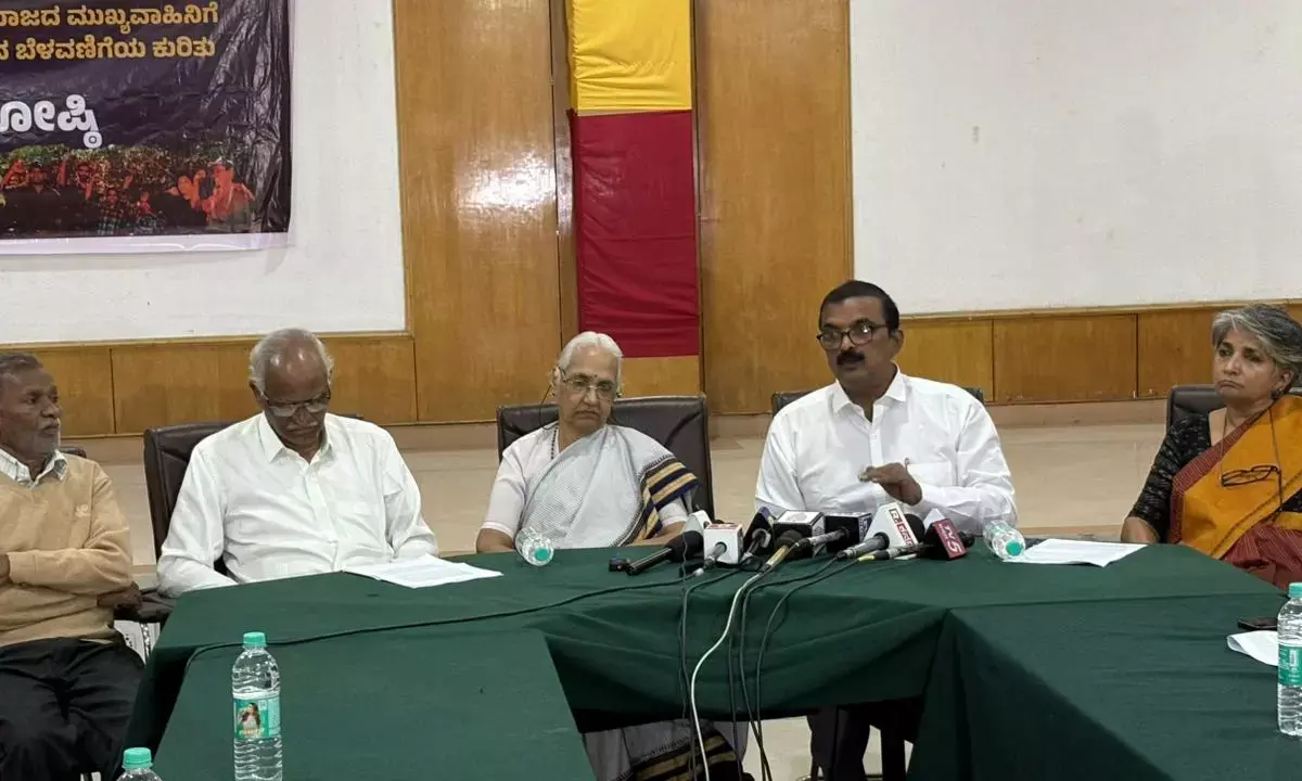 ಸುದ್ದಿಗೋಷ್ಠಿಯಲ್ಲಿ ವೇದಿಕೆಯ ಪ್ರೊ.ನಗರಗೆರೆ ರಮೇಶ್, ತಾರಾರಾವ್, ಮಾಜಿ ಸಚಿವೆ ಬಿ.ಟಿ. ಲಲಿತಾ ನಾಯಕ್ ಉಪಸ್ಥಿತರಿದ್ದರು.