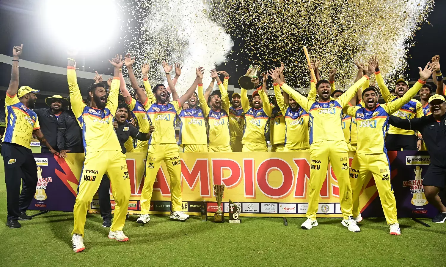 ಬೆಂಗಳೂರಿನ ಚಿನ್ನಸ್ವಾಮಿ ಕ್ರೀಡಾಂಗಣದಲ್ಲಿ ಭಾನುವಾರ ರಾತ್ರಿ ನಡೆದ ಫೈನಲ್ ಪಂದ್ಯದಲ್ಲಿ 45 ರನ್ಗಳ ಅಂತರದಿಂದ ಬೆಂಗಳೂರು ಬ್ಲಾಸ್ಟರ್ಸ್ ವಿರುದ್ಧ ಜಯಿಸಿದ ಮೈಸೂರು ತಂಡವು ಮಹಾರಾಜ ಟ್ರೋಫಿಯನ್ನು ತನ್ನದಾಗಿಸಿಕೊಂಡಿದೆ.