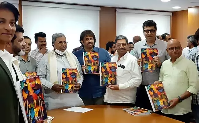 ಬೆಂಗಳೂರು: ಜನದನಿಯ ಸಾರಥಿ 'ವಾರ್ತಾಭಾರತಿ' ಕನ್ನಡ ದೈನಿಕದ 21ನೇ ವಾರ್ಷಿಕ ವಿಶೇಷಾಂಕವನ್ನು ಮುಖ್ಯಮಂತ್ರಿ ಸಿದ್ದರಾಮಯ್ಯ ಅವರು ರಾಜ್ಯ ಹಣಕಾಸು ಸಂಸ್ಥೆಯ ಕಚೇರಿಯಲ್ಲಿ ಗುರುವಾರ ಬಿಡುಗಡೆ ಮಾಡಿದರು.