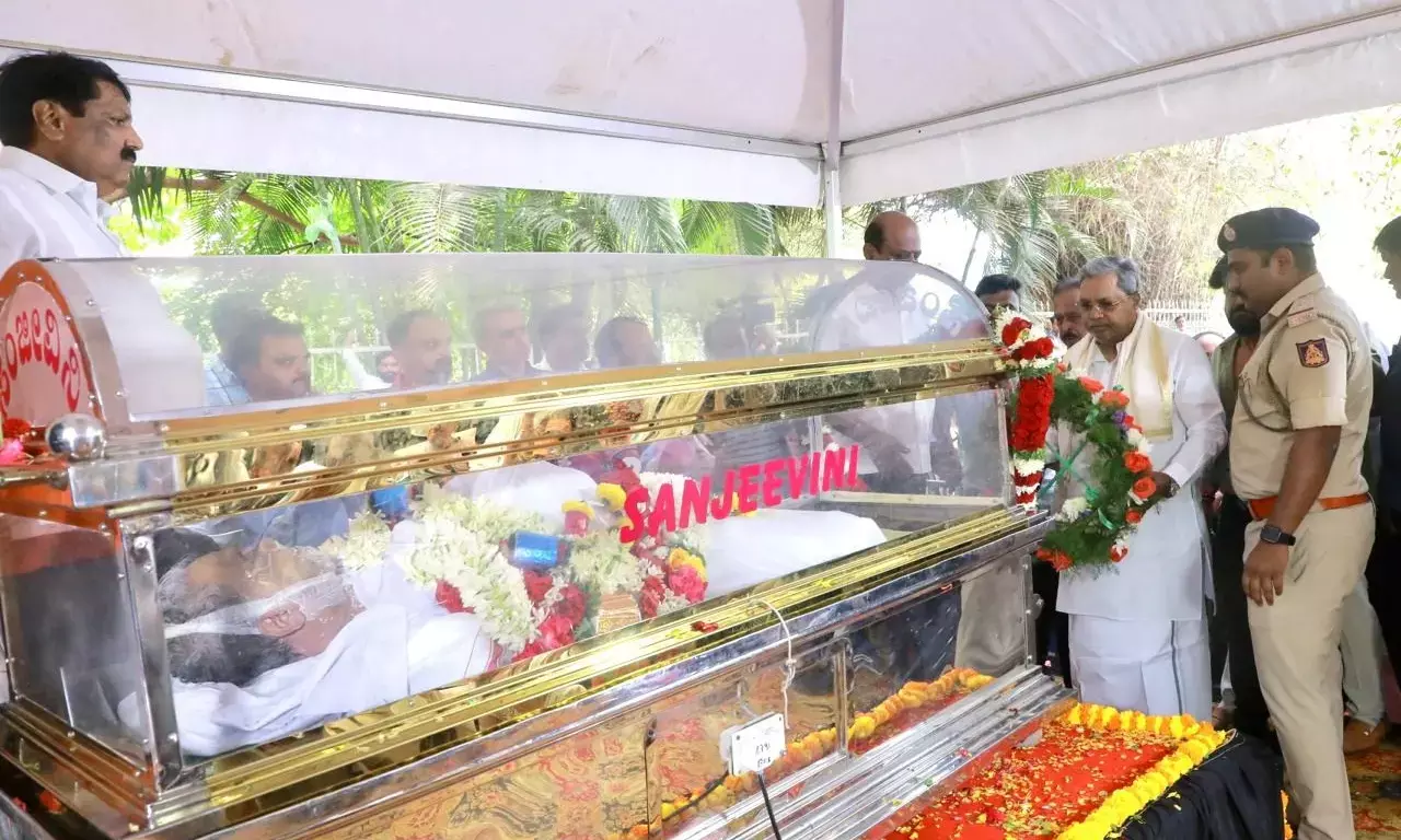 ಅಂತ್ಯಕ್ರಿಯೆಗೂ ಮುನ್ನ ರವೀಂದ್ರ ಕಲಾಕ್ಷೇತ್ರದಲ್ಲಿ ಪಾರ್ಥಿವ ಶರೀರವನ್ನು ಸಾರ್ವಜನಿಕ ದರ್ಶನಕ್ಕೆ ಇಡಲಾಗಿತ್ತು. ಸಿಎಂ ಸಿದ್ದರಾಮಯ್ಯ, ನಟರಾದ ಯಶ್, ರವಿಚಂದ್ರನ್, ಧ್ರುವ ಸರ್ಜಾ, ನಟಿ ಶ್ರುತಿ ಸೇರಿದಂತೆ ಹಲವು ಗಣ್ಯರು ಅಂತಿಮ ದರ್ಶನ ಪಡೆದಿದ್ದರು.