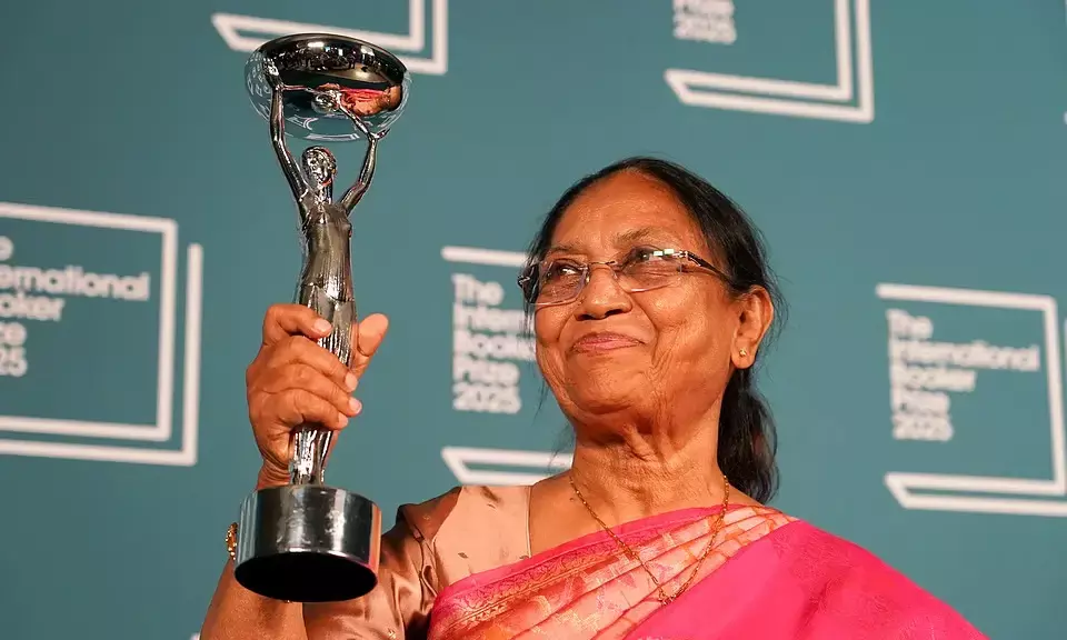 ಲಂಡನ್ ನಲ್ಲಿ ನಡೆದ ಬೂಕರ್ ಪ್ರಶಸ್ತಿ ಪ್ರದಾನ ಸಮಾರಂಭದಲ್ಲಿ ಪ್ರಶಸ್ತಿಯೊಂದಿಗೆ ಕನ್ನಡದ ಲೇಖಕಿ ಬಾನು ಮುಷ್ತಾಕ್ ಅವರ ಸಂಭ್ರಮ | Photo : AP