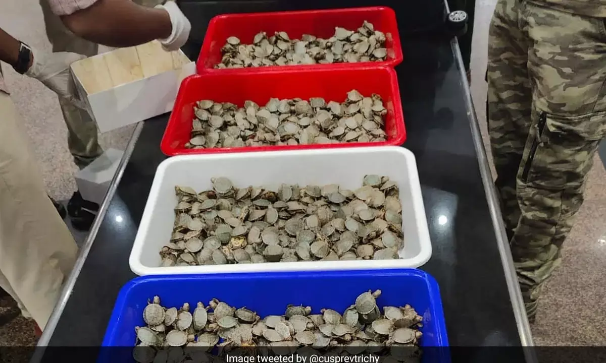 ತಮಿಳುನಾಡು ವಿಮಾನ ನಿಲ್ದಾಣದಲ್ಲಿ 6,500 ಕ್ಕೂ ಹೆಚ್ಚು ಜೀವಂತ ಆಮೆಗಳು ವಶ, ಇಬ್ಬರ ಬಂಧನ
